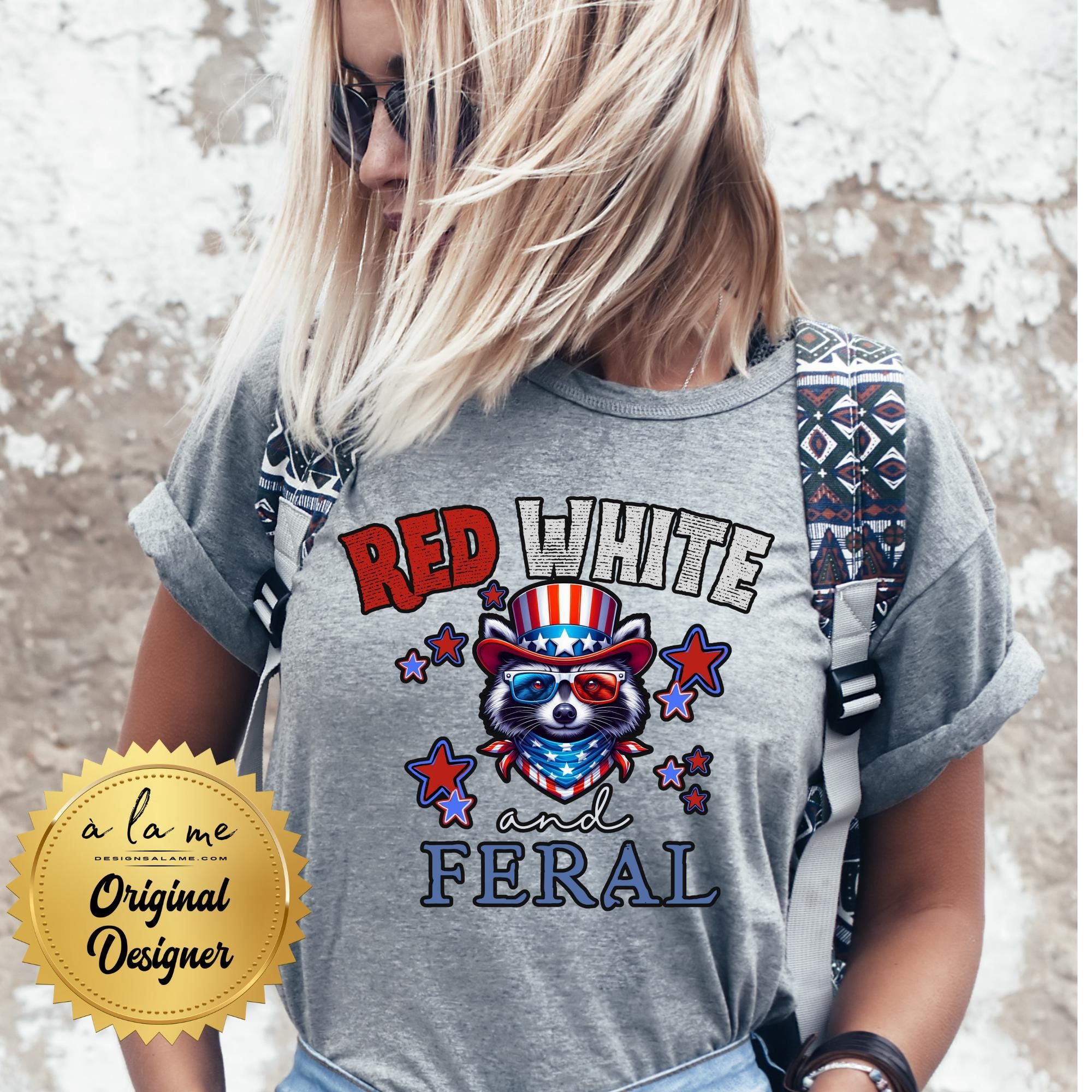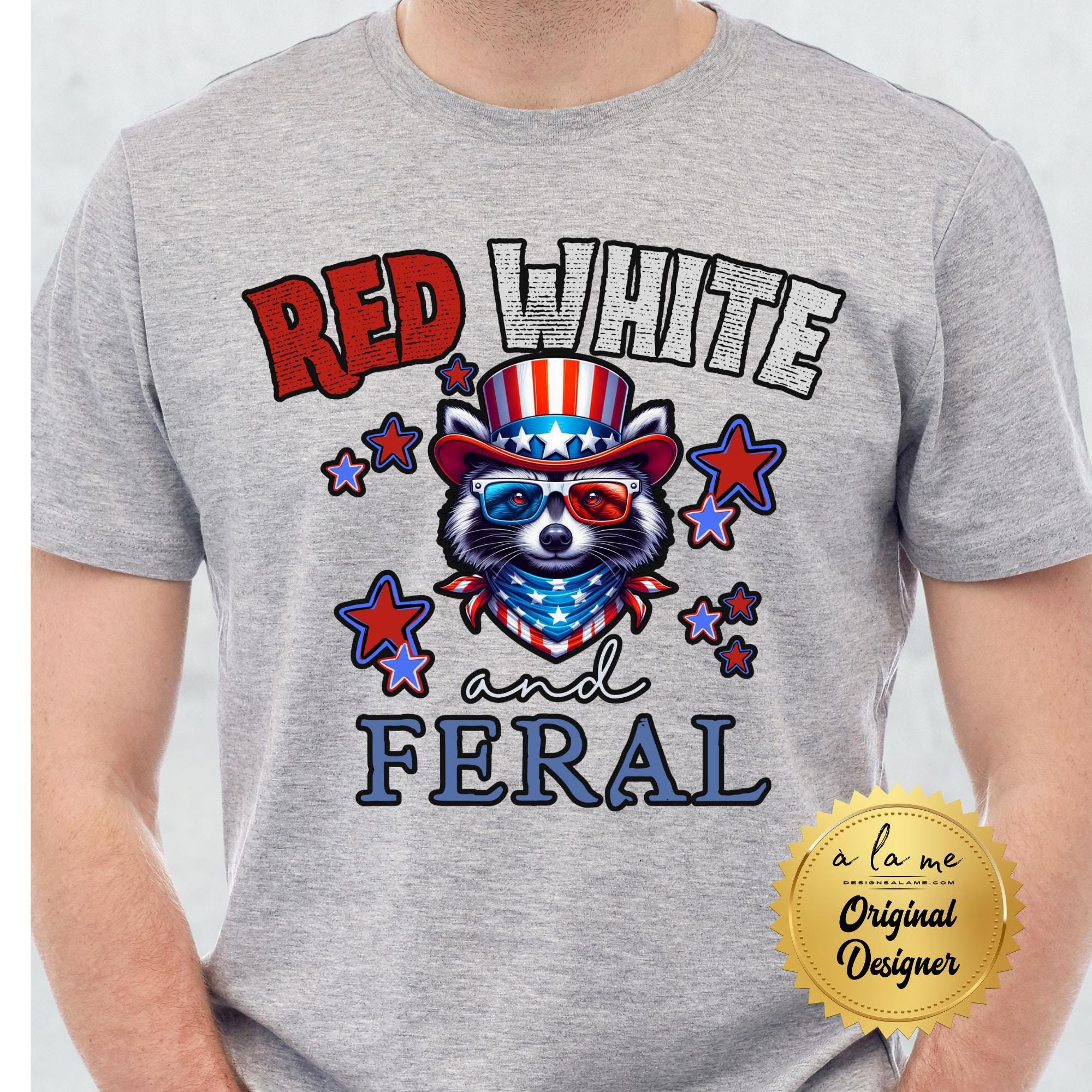 DTF Transfers - Patriotic Raccoon Red White & Feral - 4th of July Memorial Day - Ready to Press